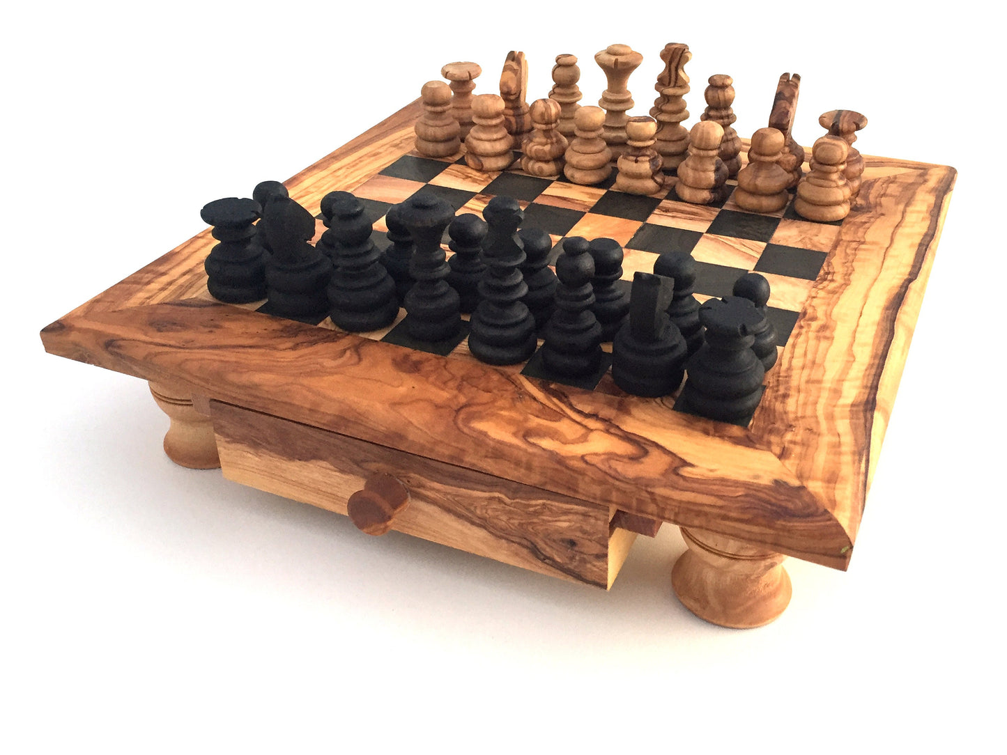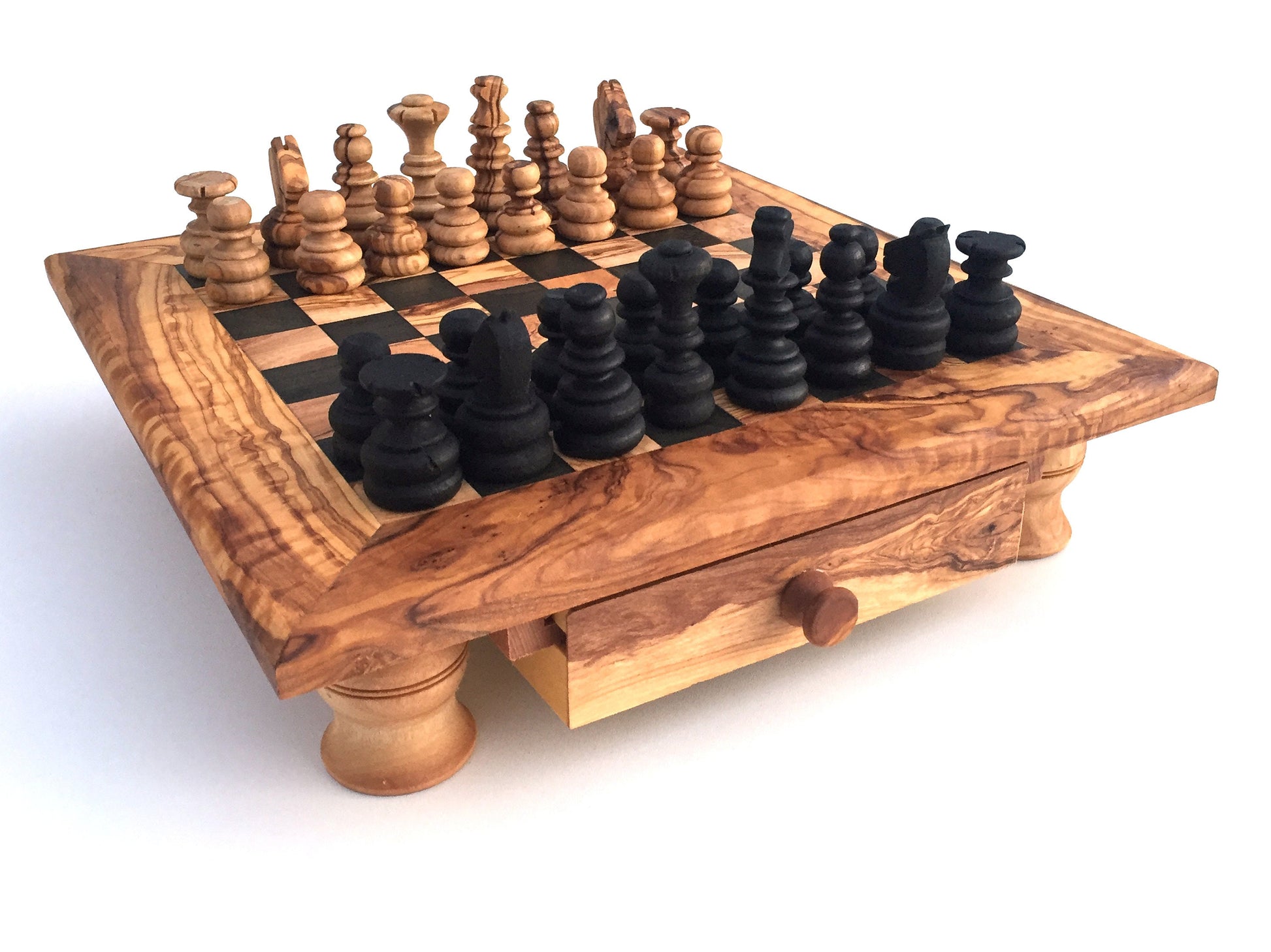 Schachspiel gerade Kante, Schachtisch Gr. L inkl. 32 Schachfiguren